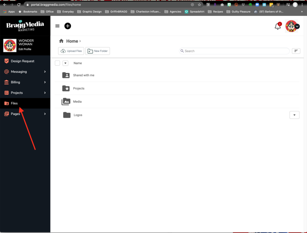 Once you login to the Bragg Media Client Portal, click on files.